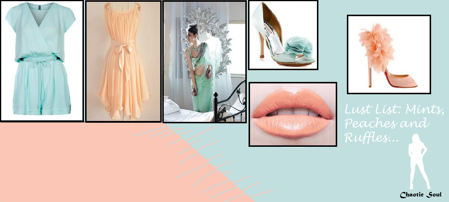 Anyway let’s not discuss that and let me reveal this week’s Lust List. It’s inspired from my cravings for Cupcakes and Macaroons. It’s all about ruffles, mint and peach. Ruffles really don’t suit my body type. I am on the heftier side and so anything that has ruffles makes me look like a larger version of myself. But personally I just adore ruffles. My mother never liked the colors mint and peach on me but I just love them. Maybe it’s the cupcakes and macaroons that made me fall in love with these two colors.
