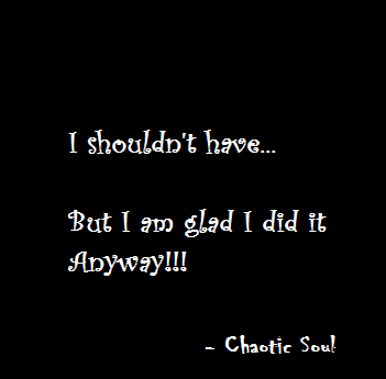 The ‘I shouldn’t have…’ moment no more comes to my life as I have started taking life a bit more lightly and have started smiling in all the crucial situations too. Why? – Because, it isn’t worth regretting at all. The damage is been done so why the hell do I spoil my today for my yesterday. Right?